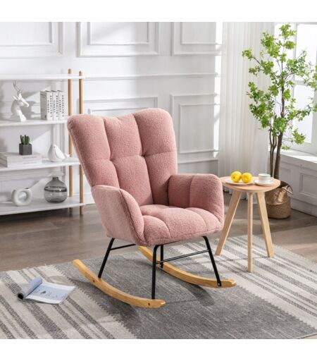 Redom - Rocking chair, fauteuil à bascule en tissu Teddy de style contemporain, avec siège rembourré, Rose, 89x70x98 cm