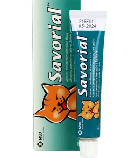 Savorial® prévient la formation et facilite l’élimination des boules de poils chez le chatLes chats sont des animaux très propres qui passent en moyenne un quart de leur journée à faire leur toilette ! En se léchant, ils avalent un grand nombre de poils dont une partie est naturellement évacuée au cours du transit.Seulement, il arrive que ces poils s’accumulent en grande quantité dans l’estomac ou dans les intestins de votre compagnon et forment des boules de poils, aussi connues sous le nom de « trichobézoards ».Savorial® est conseillé en prévention mais aussi en cas de présence avérée de boules de poils.Différents symptômes doivent vous mettre la puce à l’oreille :Une toux sèche et quinteuse,Des selles plus dures ou moins fréquentes que d’habitude,Des vomissements ou régurgitations contenant des poils ou des boules de poils.Si vous constatez l’un de ces signes d’alerte, vous pouvez avoir recours à Savorial® qui l’aidera à évacuer les poils ingérés en facilitant le transit intestinal. Si les symptômes, même bénins, persistent après l’utilisation de Savorial®, une consultation vétérinaire est recommandée.Recommandations nutritionnellesGrâce à sa formule unique, et notamment à l’huile de poisson et la dextrine de malt qu’il contient, Savorial® a un goût très apprécié des chats ce qui le rend facile à administrer.En cas de boules de poils, pour un chat de 5 kg, administrer 3 cm de pâte, initialement une fois par jour pendant 3 jours, puis deux fois par semaine pendant 2 semaines. La dose peut être ajustée en fonction de la taille du chat.Si votre chat se lèche beaucoup ou chez les chats à poils longs, Savorial® peut être administré en prévention une fois tous les 15 jours.CompositionExtrait de malt, huile de poisson et eau.Constituants analytiquesHumidité (16%), protéines (2%), matière grasse (48,5%), fibres brutes (1%), matière inorganique (1%).Additifs par kiloVaseline blanche, lécithine, caramel, vitamine E. ...