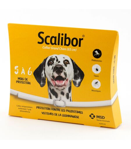 Scalibor® protège vos chiens depuis plus de 20 ans et assure la plus longue protection contre les phlébotomes. A base de delthamétrine, Scalibor® est un collier antiparasitaire qui protège votre chien 12 mois contre les phlébotomes, et 6 mois... ...