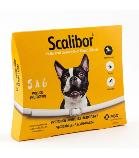 Scalibor® protège vos chiens depuis plus de 20 ans et assure la plus longue protection contre les phlébotomes. A base de delthamétrine, Scalibor® est un collier antiparasitaire qui protège votre chien 12 mois contre les phlébotomes, et 6 mois... ...