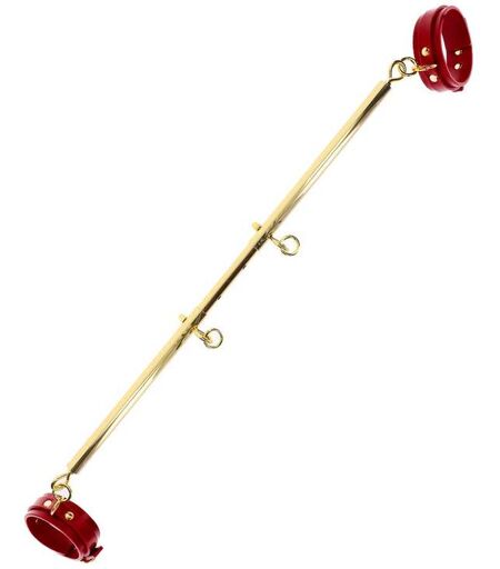Je suis le kit barre d'écartement Bondage in Luxury de la marque Taboom (https://www.espaceplaisir.fr/marques/441-taboom). J'accompagne vos jeux de bondage pour les rendre encore plus excitants en restreignant vos mouvements ou ceux de votre partenaire... Réalisez tous vos fantasmes de soumission et de domination, en toute bienveillance avec votre partenaire, avec des jeux de bondage très excitants. Dotée de deux menottes pour chevilles, j'immobilise vos membre inférieurs pour vous permettre de réaliser toutes vos envies les plus osées avec votre moitié. Sur ma barre se trouvent deux anneaux auxquels vous pourrez accrocher des menottes pour poignets ou encore une laisse. Ainsi, vous serez immobilisé·e, si vous le souhaitez, et pourrez prendre du plaisir exactement de la manière dont vous le souhaitez... Ma barre dorée et mes menottes en similicuir rouge font de moi un accessoire BDSM des plus élégants. Je complète à merveille votre collection de jouets coquins. Pour que chacun·e prenne du plaisir en toute sécurité, la communication, le consentement et la connaissance des risques liés à vos pratiques sont essentiels au bon fonctionnement de vos jeux BDSM. ...