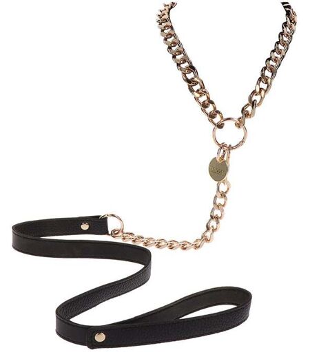 Je suis le collier et sa laisse Statement Dona de la marque Taboom (https://www.espaceplaisir.fr/marques/441-taboom). Je vous permets de concrétiser vos envies de soumission et de domination... Grâce à moi, réalisez vos fantasmes BDSM les plus bestiaux, en complicité avec votre partenaire ! Mon beau collier aux mailles larges orne à merveille votre cou... Quant à mon élégante laisse, elle fait de vous ou votre moitié un véritable objet de désir ! Vous pouvez même utiliser mon collier ou ma laisse de manière indépendante ou avec l'accessoire de votre choix. Ils sont en effet détachables pour vous permettre des jeux variés et toujours plus pimentés. Mon similicuir noir et mes chaînes dorées vous donnent l'élégance et la splendeur que vous méritez ! Leur métal lourd et froid vous donnera d'exquises et intenses sensations. Dimensions : * Collier : 49 cm * Laisse : 75 cm Pour que chacun·e prenne du plaisir en toute sécurité, la communication, le consentement et la connaissance des risques liés à vos pratiques sont essentiels au bon fonctionnement de vos jeux BDSM. ...