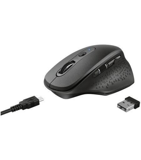 La souris premium La souris Trust Ozaa est conçue dans un esprit de confort. Grâce à son design ergonomique, vous travaillerez toute la journée, votre main toujours dans une position confortable. Elle dispose de six boutons au total, les deux principaux étant silencieux afin de ne pas déranger votre entourage tandis que vous travaillez sans relâche. Elle est dotée d’une molette de défilement horizontale, d’une batterie rechargeable et elle est sans fil avec une portée allant jusqu’à 10 mètres. C’est vraiment une souris premium. Pour un confort optimal La Trust Ozaa bénéficie d’un design ergonomique, réduisant au minimum la tension sur vos poignets. Vous travaillerez des heures durant sans compromettre votre confort. Elle dispose de six boutons, d’un commutateur DPI et de deux molettes de défilement, une verticale et une horizontale, pour un contrôle total de votre travail. Et les deux boutons principaux sont silencieux, vous ne dérangerez donc pas vos collègues pendant votre travail. ...