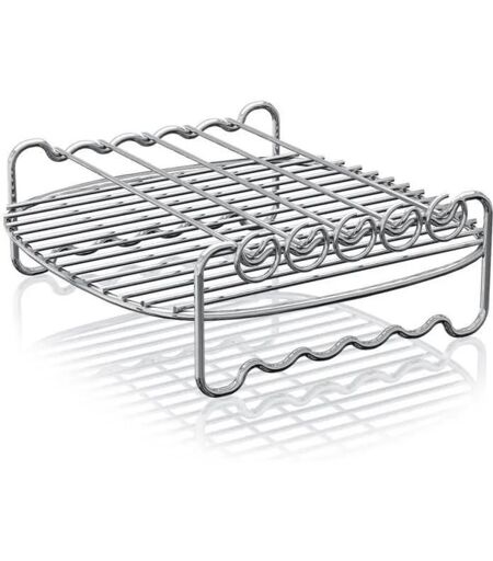Améliorez les capacités de votre AirFryer à l'aide de cette grille à double couche . Faites cuire, griller ou frire de savoureux hamburgers, des ailes de poulet, du poisson et bien plus encore, de manière simple, rapide et saine. Les brochettes vous permettront également de déguster de délicieux shashliks de légumes ou de viande.CUISINEZ DES ALIMENTS RAPIDES EN TOUTE SIMPLICITÉCet accessoire vous aidera à cuire divers aliments légers, comme les hamburgers.COMPOSANTS COMPATIBLES AVEC LE LAVE-VAISSELLELe tiroir amovible et le panier à aliments sont dotés d'un revêtement anti-adhésif spécial. Ces deux éléments peuvent également être passés au lave-vaisselle. ...