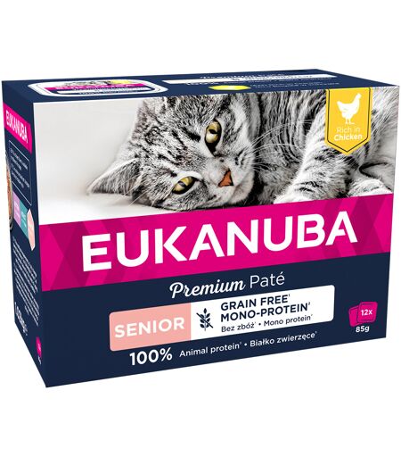 Lot Eukanuba Senior sans céréales 48 x 85 g pour chat - poulet