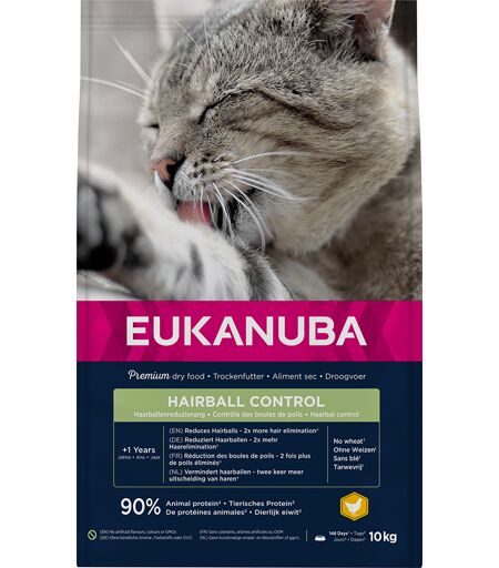 Eukanuba Hairball Control Adult pour chat - 10 kg
