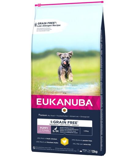 2x12kg Eukanuba Grain Free Puppy Small / Medium Breed Poulet - Croquettes Pour Chien
