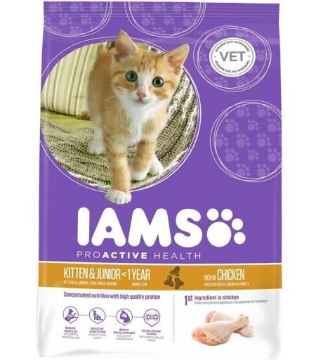 Marque : IAMS, Type de produit : Croquette, Famille d'animal : Chat, Taille de l'animal : Petit, Moyen, Grand, Type de Produit : Croquettes, Age de l'animal : Junior, Garantie du fabricant : Information non communiquée, durée de disponibilité des pièces détachées essentielles à l utilisation du produit : Information non communiquée., Information non communiquée, Description du produit : Croquettes au poulet., Toutes races., 10kg., Pour chaton., Contenance/unité : 10kg, Poids : 10kg, Poids paquet / boite : 10 à 15 kg, Pays d'origine : Pays-Bas, Viande : Poulet ...