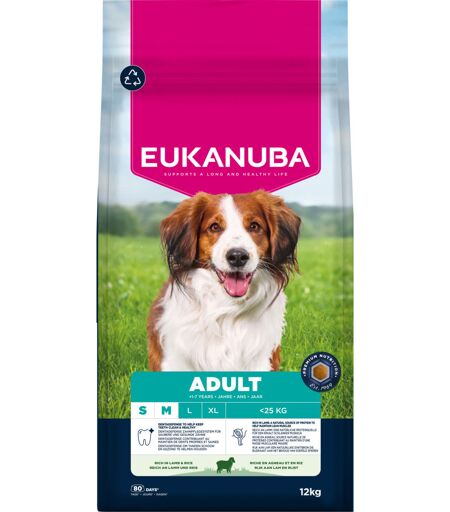 12kg Eukanuba Premium Nutrition Adult Small & Medium Breed Agneau & Riz Nourriture sèche pour chiens