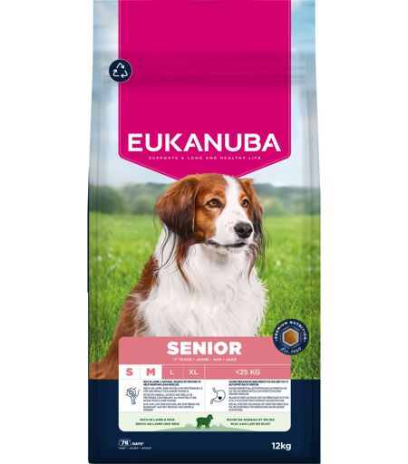 12kg Eukanuba Premium Nutrition Senior Small & Medium Breed Agneau & Riz Nourriture sèche pour chiens