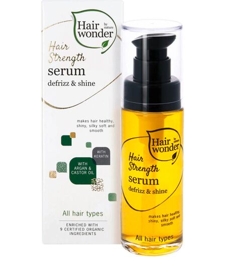 Sérum concentré et intensément nourrissant. Rend instantanément les cheveux rebelles soyeux, lisses, faciles à coiffer, brillants et sans frisottis. Enrichi de 9 ingrédients biologiques certifiés, d'huile de ricin et de kératine active. Application : répartir une goutte de sérum uniformément sur les cheveux. Ne pas rincer. Conseil : utiliser en combinaison avec les autres produits Hairwonder Hair Strength. ...