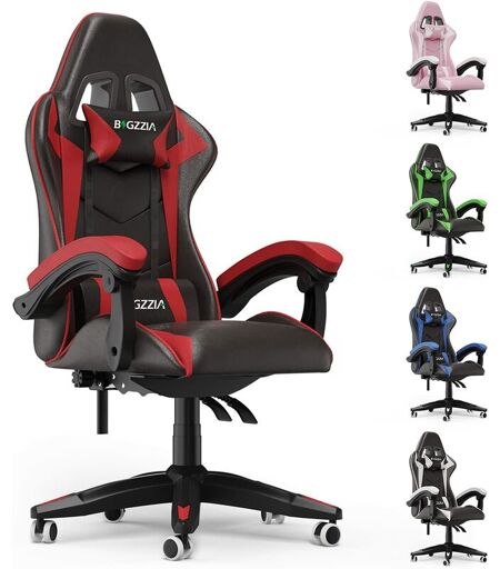 Bigzzia - Fauteuil de bureau Chaise Gamer Chaises de bureau à haut dossier avec coussin et dossier inclinable Noir et Rouge