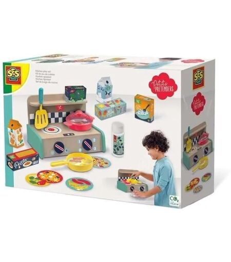 Jeu de Cuisine en Bois - Collection "Petits Pretenders" de SES Toi aussi, tu aimes cuisiner ? Chez toi, souhaites-tu aider dans la cuisine ou bien ouvrir ton propre restaurant ? Alors, ce kit de jeu de la collection "Petits Pretenders" de SES avec une cuisine en bois est fait pour toi ! Contenu du Kit Outre la cuisine en bois, ce kit inclut : Une poêle Une casserole Une spatule Une bouteille d'huile Six produits d'épicerie Âge : 3 ans et + ...