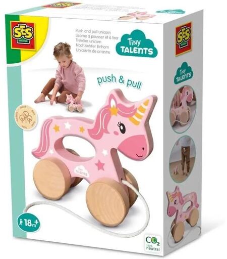 Licorne En Bois 2 En 1 - A Pousser Et A Tirer - Ses Creative - Licorne Rose A Pousser Ou A Tirer.