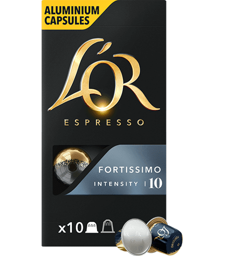 L’intense et corsé L’OR Espresso FORTISSIMO allie des arômes exaltants d’épices à la force de grains de café Arabica et Robusta profondément torréfiés pour créer une expérience de dégustation particulièrement stimulante. ...