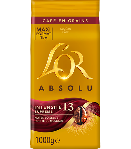 Torréfaction brune et intense Notes boisées et pointe de muscade Intensité 13 Grains L'OR Absolu 13 : une expérience café captivante Découvrez un monde d'arômes variés avec les grains de café Arabica et Robusta soigneusement sélectionnés par L'OR pour garantir un café aux notes boisées et aux arômes puissants et vous offrir un voyage gustatif intense et raffiné. Ce paquet de 1 kg inclut des grains de café premium promettant chacun une expérience luxueusement douce et riche en saveurs. Parfait pour les amateurs de café cette sélection apporte l'art du café de qualité dans votre tasse à chaque infusion. ...