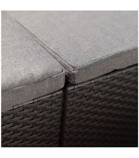 Set comprenant 1 canap‚ d'angle 5 places ( L 172 x P 172 x H 74 cm) avec coussins d'assises en polycoton gris et dossiers ergonomique + 1 table basse imitation rotin tressé et plateau finition latte (L 58,5 x l 58,5 x H 43 cm ) - A monter soi-mˆme - Couleur : gris graphite - Multiples configurations po ...