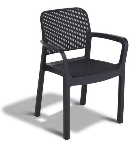 Lots de 6 Fauteuils monoblocs Samanna empilables imitation rotin tressé rond, en résine de synthese injectée (polypropylene - Caco3), coloris graphite. Dimensions 58x53x89 cm. ...