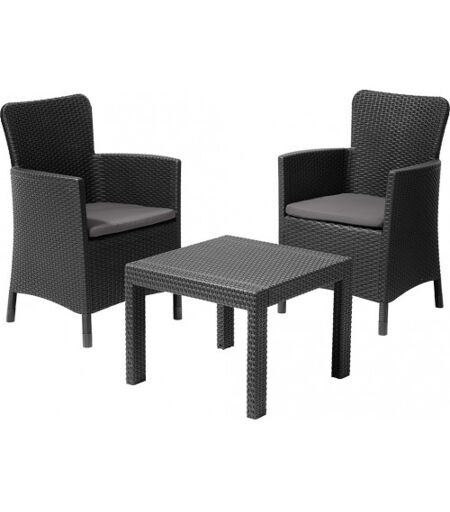 L’ensemble de balcon Salvador vous permet de profiter pleinement de votre balcon. Les fauteuils de cet ensemble sont d’un confort optimal, grâce a leurs hauts dossiers et a leurs coussins qui sont livrés avec. La petite table carrée est le complément parfait, tout comme les deux chaises en version résine tressée plate. Si vous souhaitez utiliser les fauteuils a l’intérieur, il n’y aucun souci, car ils ne sont pas lourds et sont faciles a déplacer. Transformez votre balcon en un endroit propice a la détente et a la convivialité avec l’ensemble de balcon Salvador ! Spécifications: Dimensions de la table: 59 x 59 x 43 cm Dimensions des chaises: 62 x 60 x 89 cm Dimensions de l'emballage: 60 x 80 x 50 cm Poids net: 13,00 kg Matieres: Plastique Design: Imitation rotin Couleur: Graphite/gris Photo d'illustration> ...