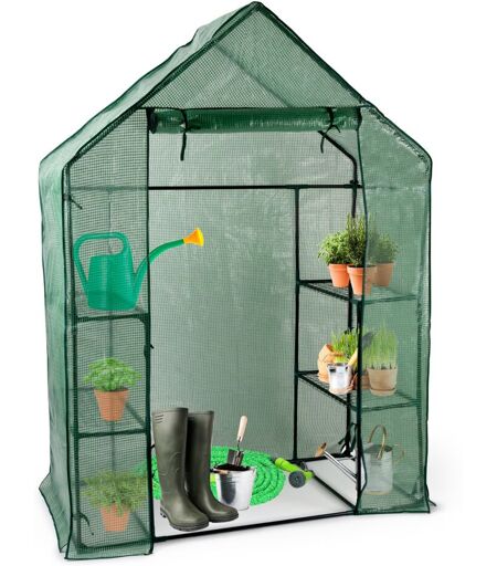 Kinzo Serre de Jardin 143 x 73 x 195 cm Mini Serre avec 6 Étagères - Abri de Jardin en Kit - Transparent et Vert