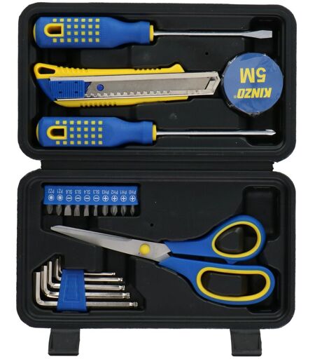 Kinzo Mallette d'Outils 21 Pièces - 2x Tournevis, Ciseaux, Couteau, Clés Allen, Ruban adhésif