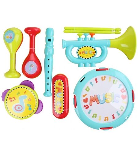 Let's Play Ensemble d'instruments Musique Coordination ?il-main 9 pièces - Boules de Samba, Trompette, Flûte à bec, Tambour, Tambourin et Harmonica - Dès 1 an