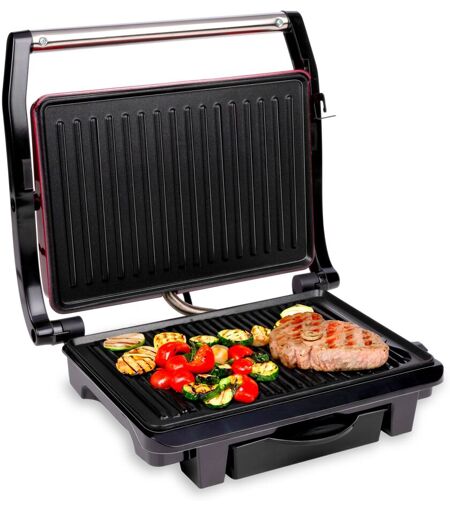 alpina Appareil Croque Monsieur 230V/1000W - Appareil à Panini - Légumes, Pain et Viande - Revêtement Anti-Adhésif - Bac de Récupération - Noir/Rouge