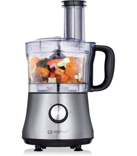 alpina 3in-1 Robot Culinaire 1L 600W Hachoir et Machine de Cuisine 2 Vitesses Hacher, Trancher et Râper Aluminium Argent