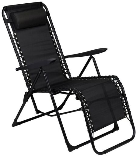 Lifetime Garden Chaise Longue Chaise Pliante Camping 93 X 46 X 110 Cm - Chaise De Jardin Avec Dossier Réglable Et Oreiller - Facile À Ranger - Fauteuil Pliant - Noir