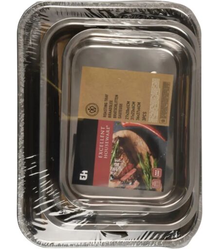 3 Plats à rôtir acier inoxydable avec poignées Ces plats à rôtir rectangulaires sont parfaits pour la cuisson au four de viandes, rôtis, poissons, pommes-de-terre, légumes... Cet ensemble de plats à rôtir et à pâtisserie est en acier inoxydable pour une répartition rapide et homogène de la chaleur ! Caractéristiques 3 Plats à rôtir acier inoxydable avec poignées : Différentes tailles : Petit : 27 x 20 x 6 cm Moyen : 31 x 23 x 6 cm Grand : 36 x 27 x 6 cm Équipés de deux poignées rabattables pour un transport facile. Bord évasé et angles arrondis pour un entretien facile. Vous pouvez les mettre au lave-vaisselle ! ...