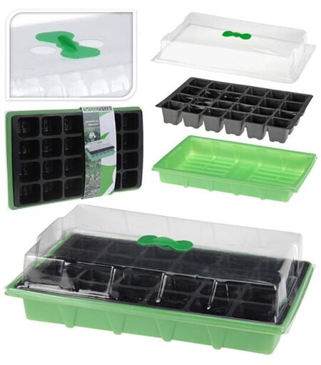 Définir 3 graines de graines 38 x 25 cm-Ce kit de germination permettra à vos graines de pousser du plastique solidement complexe, il a 24 compartiments dimensions: 36,5 x 24 x 4,5 cm-Ce kit est composé de 3 parties: 1 base ondulée pour une meilleure irrigation en eau, 1 base de 24 compartiments, 1 couverture en plastique Corrugs permettra à leurs plantes de rester régulièrement et de promettre son développement - Couvre de plas ...
