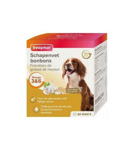 Beaphar mini-friandises à la graisse de mouton et à lapos,ail pour chien sont des collations pour chien savoureuses et saines. Un paquet contient 80 mini friandises. Soutient la fonction intestinale Contribue à un pelage brillant 100% naturel ...