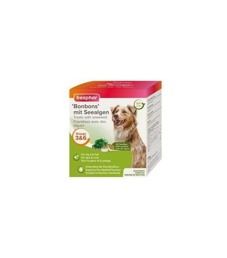 Les « bonbons » d¿algues beaphar pour la peau et la fourrure sont de délicieuses spécialités à base de graisse de mouton garnie d¿une fine capuche d¿algues (8%). Les composants naturellement présents dans la graisse de mouton soutiennent la peau et la fourrure et peuvent être bénéfiques pour une bonne digestion. Les « bonbons » beaphar à l¿ail pour la peau et la fourrure sont de délicieuses spécialités à base de graisse de mouton garnie d¿une fine capsule d¿ail (10%). La hotte à l'ail contient toutes les caractéristiques propres à l'ail. Les « bonbons » pour la peau et la fourrure à base d¿huile de saumon beaphar sont de délicieux mets composés de graisse de mouton garnie d¿un fine couche d¿huile de saumon (10 %). Les composants naturellement présents dans la graisse de mouton soutiennent la peau et la fourrure et peuvent être bénéfiques pour une bonne digestion. Les « bonbons » conviennent aux chiens de toutes races et sont un complément spécial pour l¿alimentation quotidienne. Supplément pour chiens, vous trouverez de plus amples informations ici : info@de.beaphar.com ...