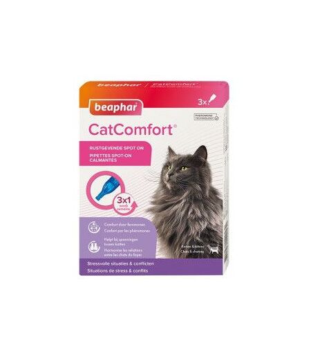 Les pipettes calmantes Beaphar CatComfort Spot On pour chat contiennent des phéromones félines qui aident votre chat à se sentir bien et apaisé. Contribue à réduire les problèmes comportementaux Idéal en cas dapos,événements stressants Convient pour la formation du chat ...