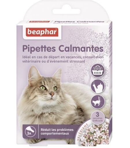 BEAPHAR Pipettes calmantes - Pour chat - Ces pipettes calmantes réduisent le stress et les problemes comportementaux des chats de toute race et de tout âge - Ces pipettes sont idéales en cas d'événements stressants (départ en vacances, consultation vétérinaire, déménagement, orage, ... ...