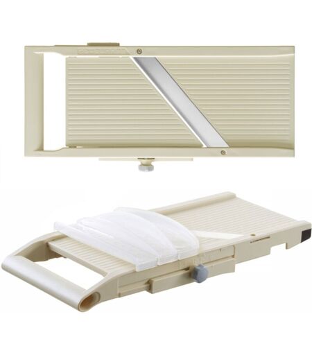 Code fabricant : 221297 La mandoline japonaise Hendi est un produit de qualité supérieure fabriqué au Japon. La qualité de coupe est comparable à celle des couteaux professionnels, mais grâce à la mandoline, les tranches de légumes ou les décorations sont toujours aussi parfaites, précisément régulières et obtenues beaucoup plus rapidement. La mandoline est livrée avec une lame plate intégrée, l'épaisseur de coupe est facilement et en douceur réglée à l'aide d'un bouton dans la plage de 1 à 5 mm . Grâce à sa surface de travail plus large, elle est idéale pour les légumes plus gros comme les courgettes, le chou et l'aubergine. Français Les lames sont en acier inoxydable SUS 420J2 et le boîtier est en ABS. Pour plus de sécurité, le râpe est équipé d'un protège-doigts. Ne passe pas au lave-vaisselle. Caractéristiques du produit : - Coupe rapide, toujours uniforme et précise en tranches très fines, - Réglage en douceur de l'épaisseur de coupe, - Convient pour couper des légumes plus gros, ...