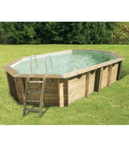 Ubbink - Piscine bois azura octogonale allongée 355x490x130cm liner beige