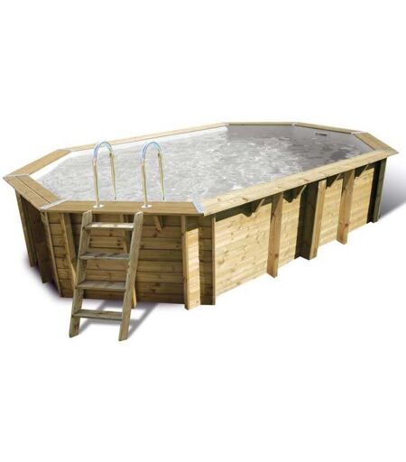 Piscine en kit octogonale modèle Océa 355 x 550 cm La piscine bois octogonale Océa 355 x 550 cm de chez Ubbink s'intégrera facilement dans votre environnement extérieur. Sa hauteur réduite de 120 cm est idéale pour les enfants mais toujours sous la surveillance d'un adulte. Facile à installer, la structure de la piscine Océa est en pin du Nord et les margelles sont en sapin blanc du Nord. Son traitement autoclave lui garantit une très bonne résistance et une longue durée de vie. Caractéristiques Diamètre extérieur : 355 x 550 cm Diamètre intérieur : 305 x 500 cm Hauteur : 120 cm Volume d'eau : 15 m3 Surface de nage : 14 m² Disponible en trois coloris: bleu adriatique, Beige ou grisEquipements fournis : Liner 75/100ème à fond plat (couleur au choix, voir ci-dessus) Filtration à sable 6,0 m3/h - D400 Echelle extérieure bois 4 marches amovibles (sécurité enfants) Echelle intérieure inox 3 marches Feutre de fond anti bactérien 200 gr/m² Feutre de paroi 170 gr/m² Finition aluminium anodisé de coinGaranties 10 ans sur la structure 2 ans sur le liner 2 ans sur les accessoires ATTENTION: Ce modèle de piscine peut être installé hors-sol, semi-enterré ou enterré . Le choix dépend de l'inclinaison et de la dureté du terrain, de vos possibilités de terrassement, ainsi que de l'esthétique recherchée. Il doit être équipé d'un système de sécurité conforme aux normes en vigueur (bâche, barrière...). Cette piscine doit obligatoirement être montée sur une dalle béton avec une hauteur de 10 à 20 cm, pour une meilleure stabilité et pour la validation de la garantie. ...