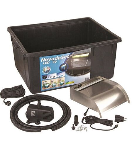 Cette cascade est idéale pour amener un côté moderne et esthétique à votre jardin. La fontaine est équipée d'un set complet, comprenant une pompe, un réservoir et une lame d'eau conçue en acier inoxydable pour avoir une plus longue durée de vie. Le kit est composé également d'une pompe de remontée, d'un bassin et 2 colliers de serrage et 1 tuyau. La cascade à également un éclairage LED afin de servir aussi d'éclairage.La cascade peut être attachée sur n'importe qu'elle surface solide, pour cela, l'installation s'avère facilitée. De plus, elle fonctionne de façon autonome avec un circuit fermé.Caractéristiques : Matière : acier inoxydableHauteur maximum : 0.75 mDébit pompe : 2300 l/hLongueur tuyau : 1.50 mCapacité : 150 LHauteur : 0.13 mLargeur : 0.30 mLongueur : 0.33 mLot de 2 colliers de serrage double de 25-29 mmTuyau de refoulement spiralé noir : 25 mm de diamètre / 1.5 mEmbout à olive filetage mâle ...