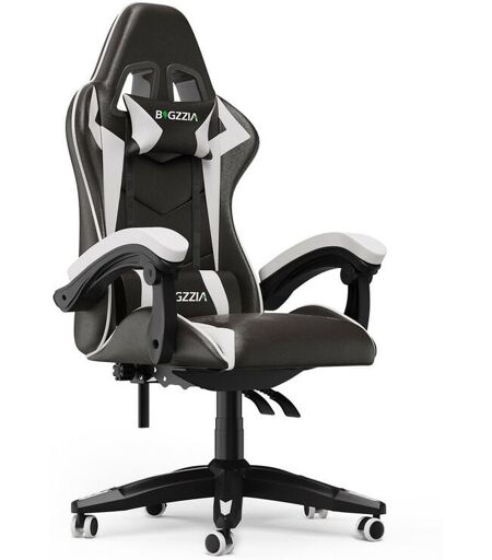 Bigzzia - Fauteuil de Bureau - Chaise Gaming - Siège de Bureau Réglable Gaming Racing - avec coussin et dossier inclinable Blanc