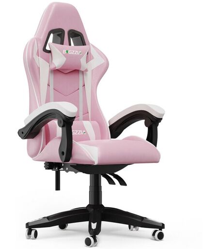 Bigzzia - Fauteuil de Bureau - Chaise Gaming - Siège de Bureau Réglable Gaming Racing - avec coussin et dossier inclinable Rose