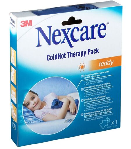 3M Nexcare™ ColdHot Teddy bouillotte Vos enfants vont adorer cette bouillotte Nexcare™ ColdHot™ Teddy en forme d'ours. Elle contient un gel sûr et non toxique, spécial micro-ondes elle est utilisée pour réchauffer le lit, l'oreiller, le berceau pendant l'allaitement. Il soulage les maux de ventre ou permet de réconforter et de rassurer l'enfant lorsqu'il est temps d'aller au lit. Avantages Bouillotte remplie de gel, spécialement conçue pour le micro-ondes, réutilisable, en forme d'ourson pour les enfants Gel sûr et non toxique. Le dos en velours doux permet une utilisation immédiate et confortable. Convient aux enfants à partir de 3 ans pour réchauffer le lit ou les pieds, ou pour soulager les maux de ventre. Application Réchauffer au micro-ondes : Placez la bouillotte TEDDY (Teddy Bear) à plat dans le four à micro-ondes réglé sur 640 W et chauffez-la en 3 cycles de 30 secondes chacun. Retirez délicatement la bouillotte du micro-ondes et pétrissez-la entre chaque cycle pour répartir la chaleur. Contenu 1 bouillotte en peluche ...