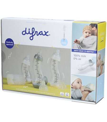 Le set nouveau-né avec goupillon est le set idéale pour nourrir votre bébé. Il contient tous les produits de base dont a besoin un bébé. Le biberon S de Difrax avec la valve anti-colique pour éviter des crampes est le biberon le plus populaire aux Pays-Bas. La forme de la tétine est facilement acceptée. Ainsi c’est plus facile pour toi et le bébé de combiner le biberon avec l’allaitement. Kit de base pour nouveau-nés Biberon S évite des crampes Finition douce donne une meilleure priseContenu du set nouveau-né: Goupillon gratuit avec brosse pour tétine intégrée pour un nettoyage optimale. 1x 170 ml Biberon S Natural blanc (inclusif tétine Small) 2x 250 ml Biberon S Natural blanc & argent (inclusif tétines Small) 2x Tétines Natural MediumBénéfices Sexe Garçon, Fille, Unisexe Âge 0+ Mois Couleur Blanc, ArgentConseils d’utilisation Il est conseillé avant la première utilisation de mettre la tétine dans l'eau bouillante. Laissez la pendant 5 minutes par mesure d'hygiène. Nettoyer la tétine avant chaque utilisation pour éviter toute prolifération de germes d'un biberon à l'autre. Vérifier la tétine en l'a tirant dans tous les sens.Dès les premiers signes de détérioration ou de fragilité, penser à changerRemplacez la sucette au bout de 4 semaines d’utilisation pour des raisons de sécurité et d’hygiène. Ne laissez jamais un enfant utiliser ce produit sans surveillance.Conservez la sucette dans un récipient sec et fermé. ...
