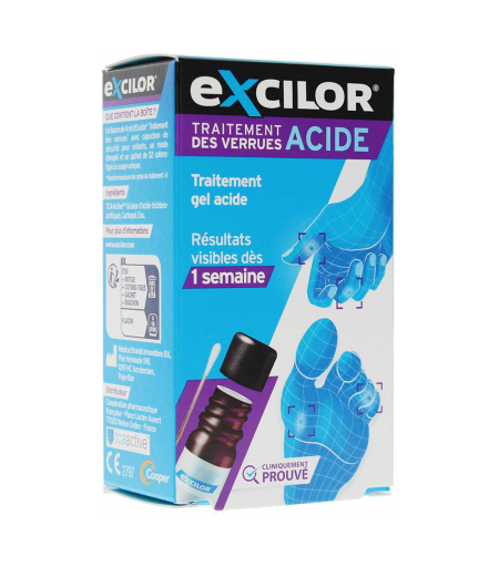 Pour éliminer rapidement et facilement, les verrues qui font surface sur vos mains ou vos pieds, Excilor vous propose son traitement par gel acide. Il est formulé à base d’un actif médical TCA-Active qui va venir exfolier votre peau. En quelques jours seulement, il élimine la verrue et le virus à l’origine de sa formation. Pratique, il s’applique facilement à l’aide des cotons tiges à usage unique pour des résultats visibles en 7 jours seulement. ...