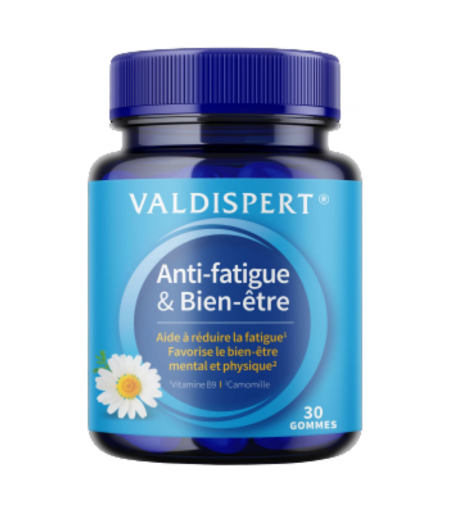 Valdispert Anti-fatigue et Bien-être est un complément alimentaire formulé pour aider à réduire la fatigue et favoriser le bien être mental ou/et physique. Il associe de la vitamine B9 et de la camomille. Sans colorant artificiel, sans accoutumance, sans dépendance, il se présente sous forme de gommes à mâcher. ...