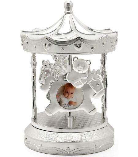 Zilverstad - Carrousel avec boîte à musique avec chevaux pour enfants, cadre argenté pour 4 photos Taille: Fi 140x211 mm ugs : ZV8130261