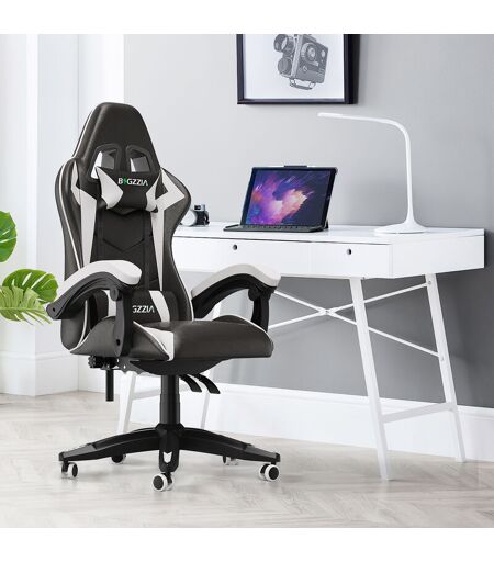 Bigzzia - Fauteuil gamer - Chaise Gaming - Siège de Bureau Réglable Pivotant Gaming Racing-avec coussin et dossier inclinable Noir et Blanc