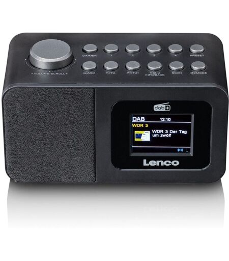 Lenco CR-625BK Radio-réveil avec dab+/fm, écran couleur de 2,4 pouces, dimmable, double alarme, minuterie, fonction snooze, mémoire de 30 stations, aux-in,