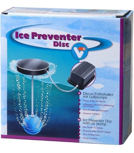 Velda VT Eisfreihalter-Diskus mit Luftpumpe Um Ihren Teich in der Winterperiode stellenweise eisfrei zu halten ist ein Treibkörper, der Diskus mit einem Luftblasenstrom darunter, die meistens wirksamste Lösung. Die Luftblasenbahn sorgt für einen konstanten Wasserstrom entlang des Treibkörpers, wodurch die Wasseroberfläche immer offen bleibt. Die aufwärts Wasserbewegung sorgt gleichzeitig dafür, dass der Überschuss an Kohlensäuregas aus dem Wasser entweicht. Hierdurch bleibt der Sauerstoffgehalt auch in den tieferen Regionen gewährleistet. INSTALLATIONSHINWEIS: Die Pumpe sollte an einem Trockenen Platz installiert werden (Schuppen, Garage, o.ä.), absolut nicht draußen im Freien. Es ist auch sehr wichtig, dass die am höchsten Punkt aufgestellt wird, damit kein Kondenswasser aus dem Schlauch in die Pumpe läuft. Der Luftstein sollte nicht zu tief im Wasser liegen, da hierdurch Gegendruck entsteht und dies zu Schäden an der Pumpe führen kann. Komplett mit: Discus Treiber Luftpumpe mit ...