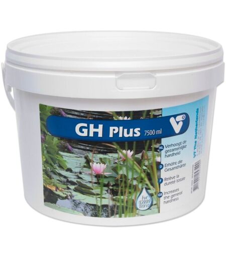 Velda GH Plus 7.500 ml für 75.000 Liter Wasser Velda GH Plus sorgt für ein gesundes und stabiles Teichmilieu Produktbeschreibungen GH Plus erhöht mit natürlichen Mineralien die Gesamthärte (GH-Wert) des Teichwassers. Die Gesamthärte wird durch Calcium und Magnesiumphosphate bestimmt. Diese natürlichen Mineralien sind essentiell für ein gesundes Wachstum und die Blüte der Teichpflanzen und für eine optimale Aktivität der Mikroorganismen. In Zierteichen ist wenigstens eine Härte von 8 tot 12 °DH erforderlich. GH Plus sorgt für ein gesundes und stabiles Teichmilieu GH Plus stimuliert das Wachstum und die Entwicklung von Sauerstoffpflanzen GH Plus tritt der Versauerung des Teichwassers entgegen ...